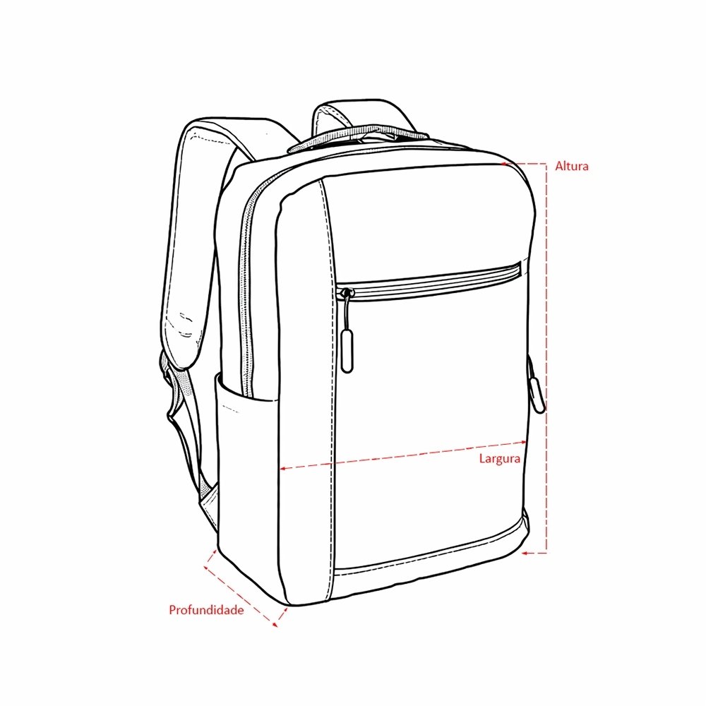 Mochila confeccionada em poliéster 300D resistente à água, com detalhes em couro sintético, fechamento em zíper e capacidade para até 15 litros. Possui compartimento principal com bolsos em diferentes tamanhos e divisória para notebooks de até 15.6 polegadas. Dispõe ainda de compartimento frontal com fechamento em zíper e faixa reflexiva, além de bolso lateral aberto e adaptador USB externo.