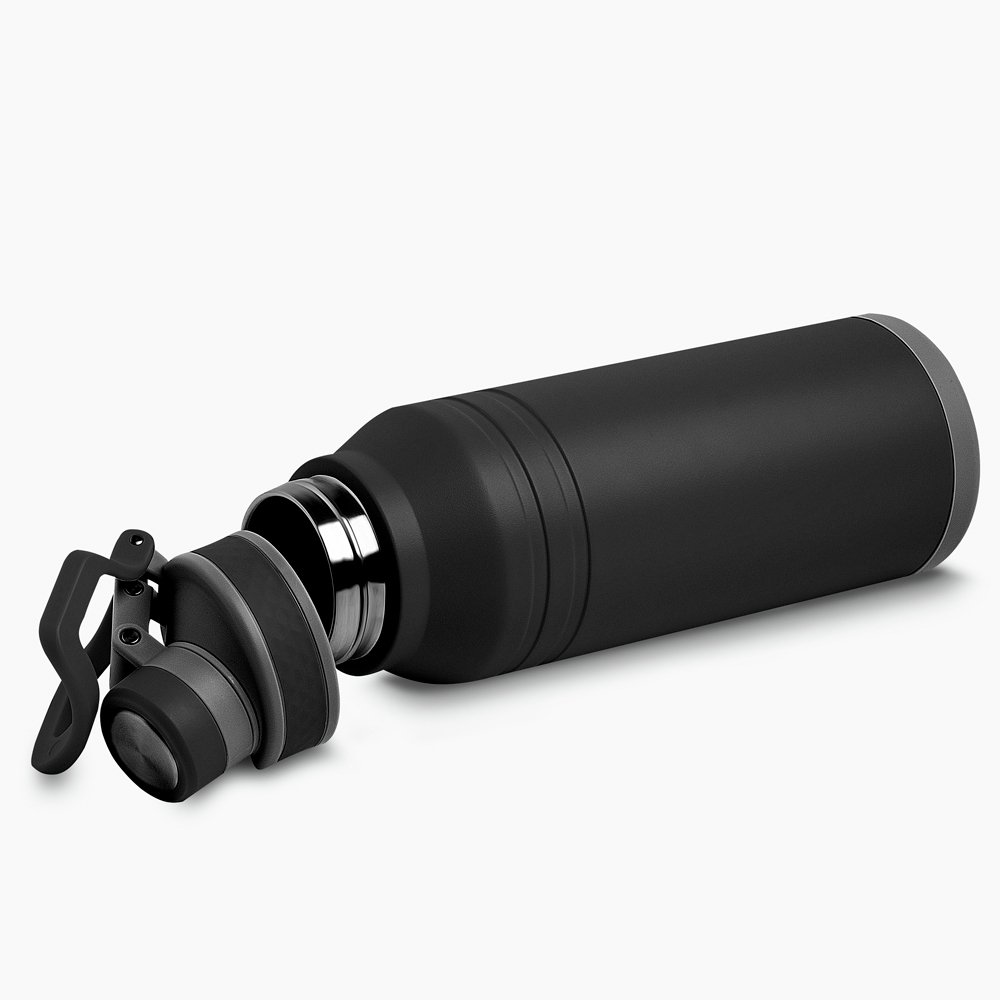 Garrafa térmica em aço inox com parede dupla isolada a vácuo, com capacidade de até 1,2l. Acabamento na parte externa em tinta pó. Alça de transporte flexivel. Tampa rosqueável com anel de silicone para vedação. Bico rosqueável.