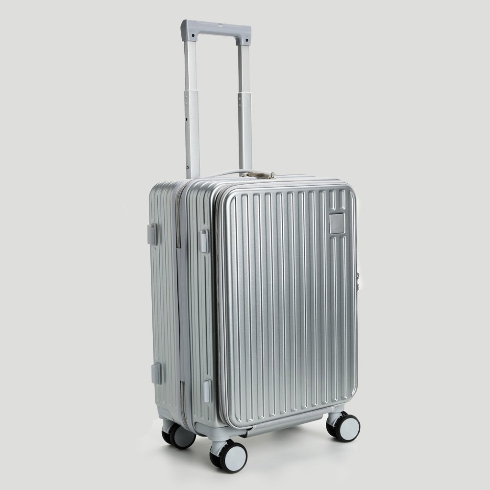 Mala de viagem feita em policarbonato (PC) com capacidade de até 32 litros. Apresenta compartimentos internos de difernetes tamanhos, incluindo um bolso telado e outro em plástico para itens molhados. Possui alça superior, alça lateral, puxador retrátil ajustável em dois níveis, quatro rodinhas com rotação de 360 graus, suporte para copo ou garrafa, quatro apoios laterais e cadeado numérico TSA. Dispõe ainda de compartimento frontal com três bolsos em tamanhos variados.
