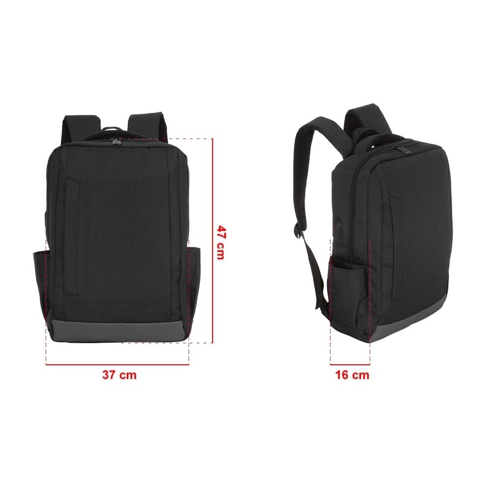 Mochila de nylon 27 litros com dois compartimentos, sendo o principal com bolso para notebook 15,6. Com divisórias internas para acessórios, a mochila possui bolsos laterais, suporte externo usb, duas alças de mãos e alça para engate em malas de viagem.