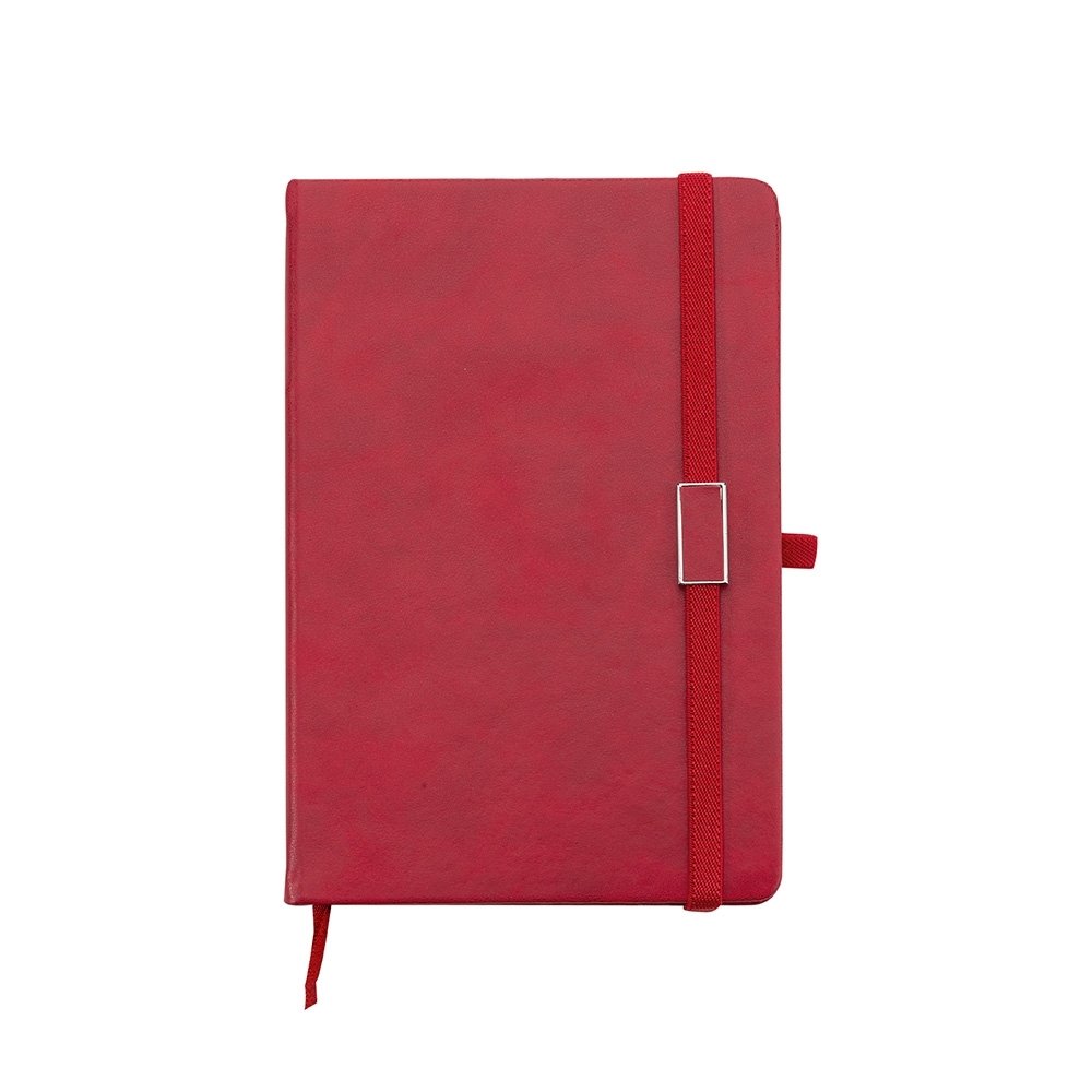Caderneta emborrachada com suporte para caneta. Contém aproximadamente 96 folhas amarelas com pauta, suporte de nylon para caneta (não acompanha), marcador de página em cetim e elástico para lacre com plaquinha de centro emborrachado.
