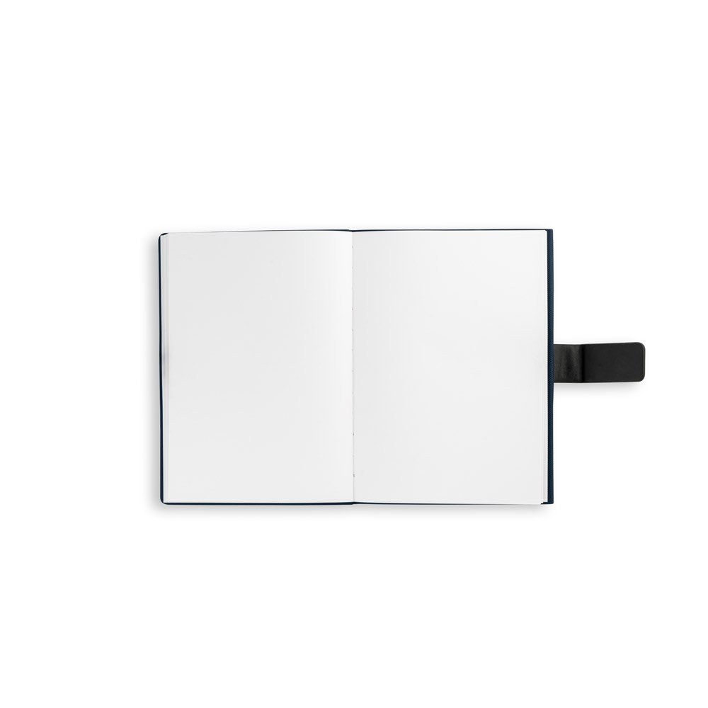 Caderno A5 com um design moderno desenvolvido para ser versátil no seu dia de trabalho. Composto por uma capa dura em 80% materiais reciclados (PU reciclado e poliéster reciclado), este caderno está estruturado em duas partes: a primeira tem 128 páginas pautadas e a segunda 128 páginas lisas, ambas feitas de um material proveniente de gestão florestal sustentável. Contém uma fita para fecho magnético do caderno. 150 x 210 mm
